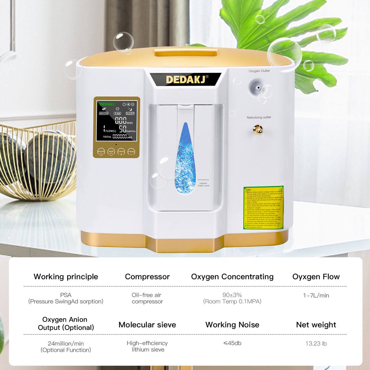 DEDAKJ Portable Continuous Flow Oxygen Concentrator O2 Generator 7liter Home Oxygen Breathing Concentrador De Oxígeno with Nebulizer Function