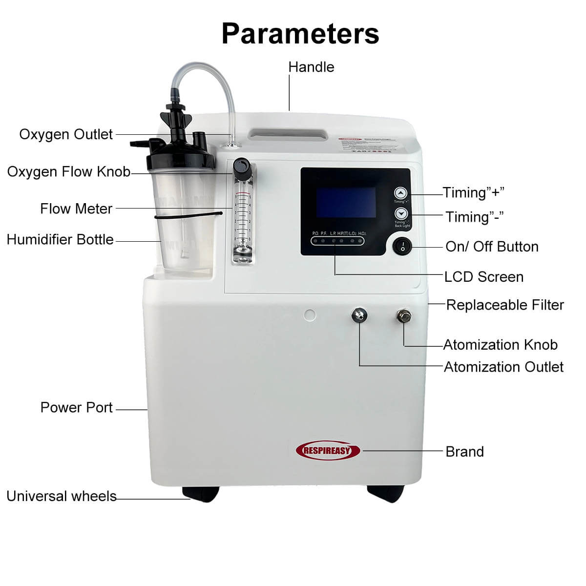The 5L 10L 15L and 20 Liters powerful medical stationary oxygen concentrators are offering, the flow rater per minute are different, 5 Liter Per Minute/ 10 Liter Per Minute/ 15 Liter Per Minute/ 20 Liter Per Minute.