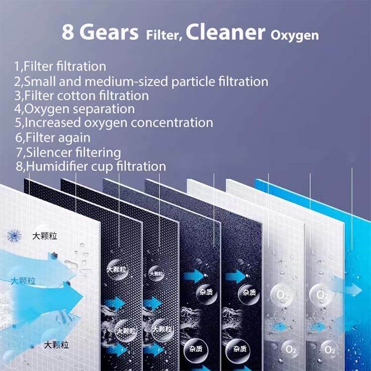 In all gears (1-10 LPM), the oxygen concentration are above 93%, meet the need of hospital medical oxygen therapy, Hyperbaric Oxygen Therapy