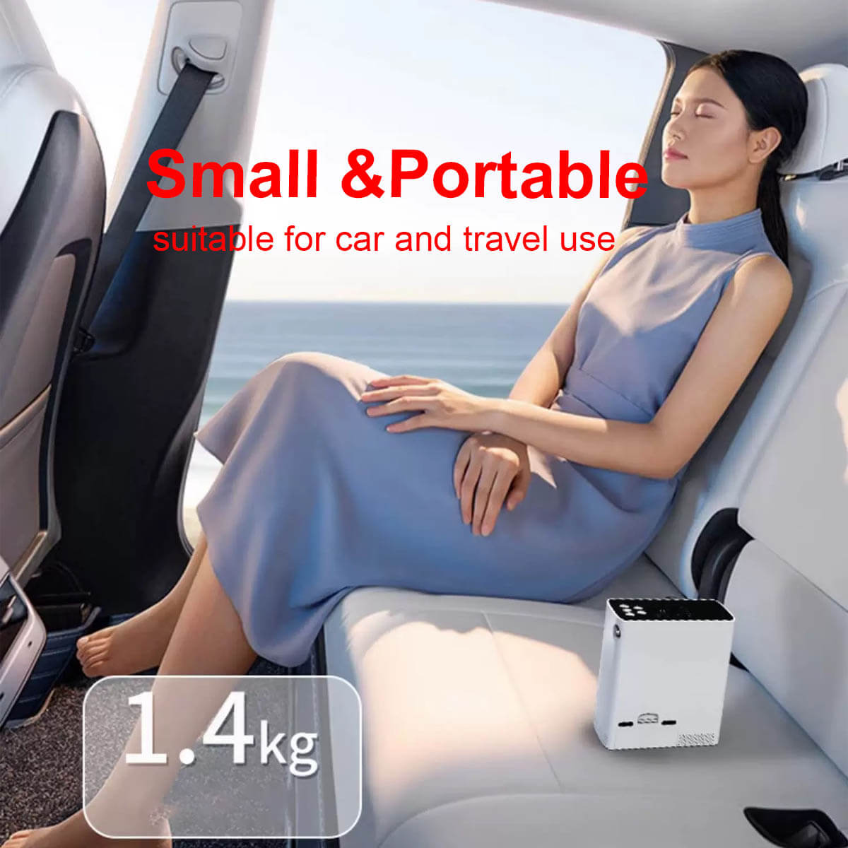 Lightweight and portable, this oxygen making machine is the ideal choice for all ages and demographics. Dimension: 15*7.5*16cm(5.9'' * 2.9'' * 6.3''), Weight: 1.1KG, 2.4lb. It is optimized for a wide range of mobility applications, including travel and recreation, entertainment and leisure activities, socializing, exercise or rehabilitation and household assistance. And can be used in car with the adapter.