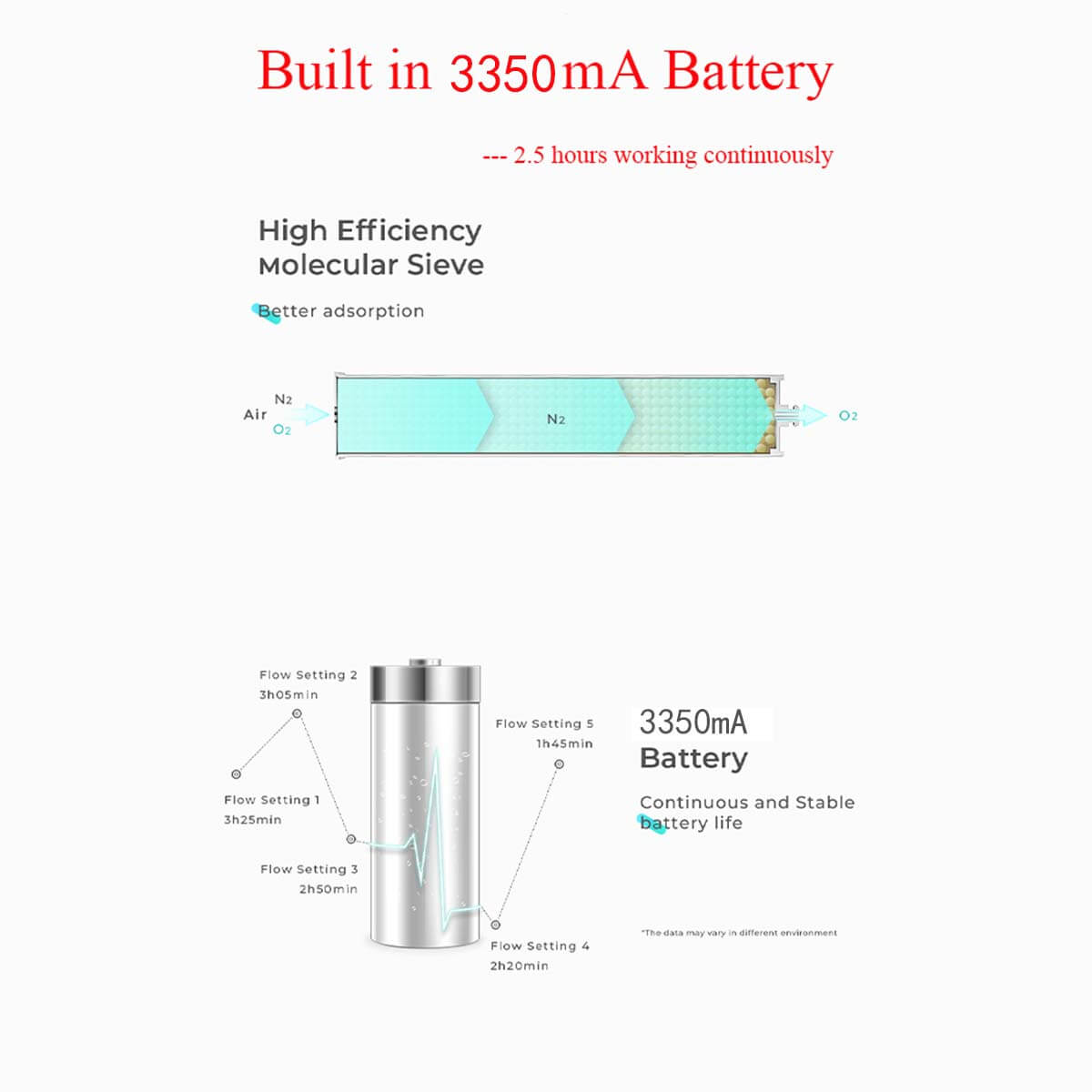 • Mobile Portable Oxygen Concentrator Comes with 10000 mAh Powerful Rechargeable Lithium Battery and Backpack